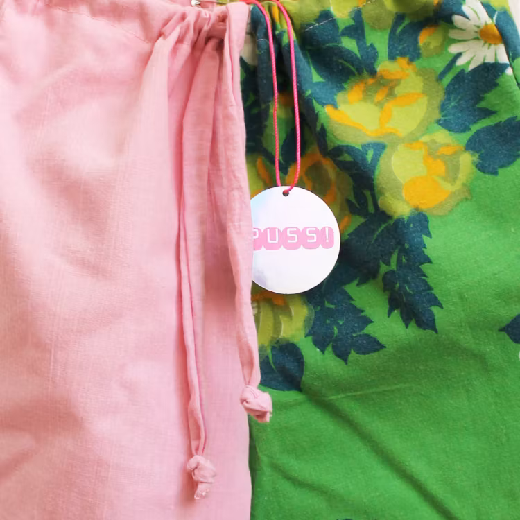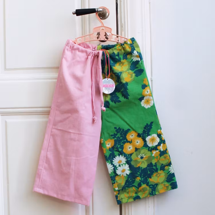 Snygg, unik byxa sydd av två olika påslakan. Dragsko med knytband i midjan. En byxa att växa i då den även är snygg som en lite kortare modell. Hållbart mode när det är som bäst, sydd med kärlek. Flickan på bilden bär en stl. 128, men i samma modell. Kolla mått för egen storleksbedömning: