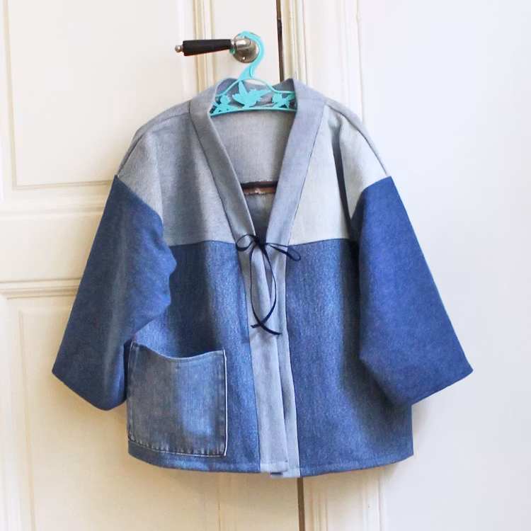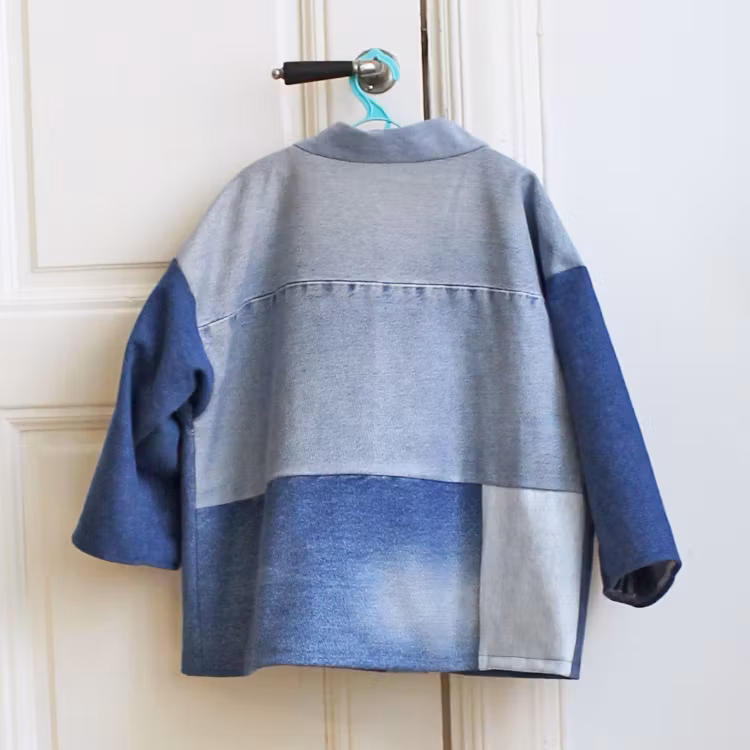 Jackan är sydd av återbrukade jeans och ärmen i mjuka jeansskjortor för en bekvämare användning. I en snygg avslappnad kimonomodell med ett nytt knytband fram. Ärmen är en lite kortare modell. Varje plagg är unikt, hållbart mode när det är som bäst.