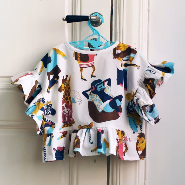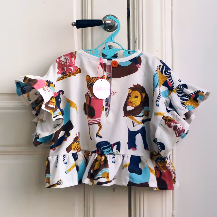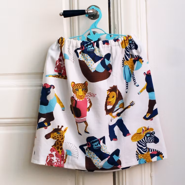 Ett set bestående av en kjol och en blus sydd av ett påslakan med roliga djurmotiv. Kjolen har knapphålsresår i midjan för längre användningstid. Hållbart mode när det är som bäst, sydd med kärlek.
